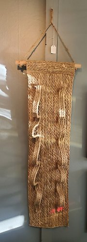 A woven rope wine holder made to hang on the wall. Holds 5 bottles of wine. Wine sold seperately. Wine not included.&nbs
